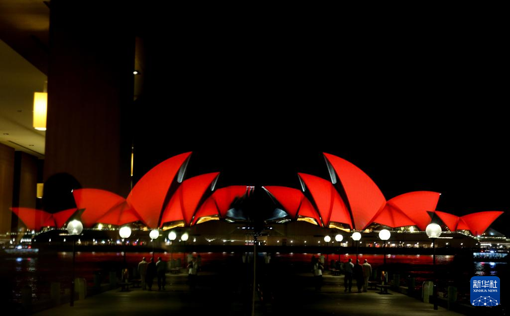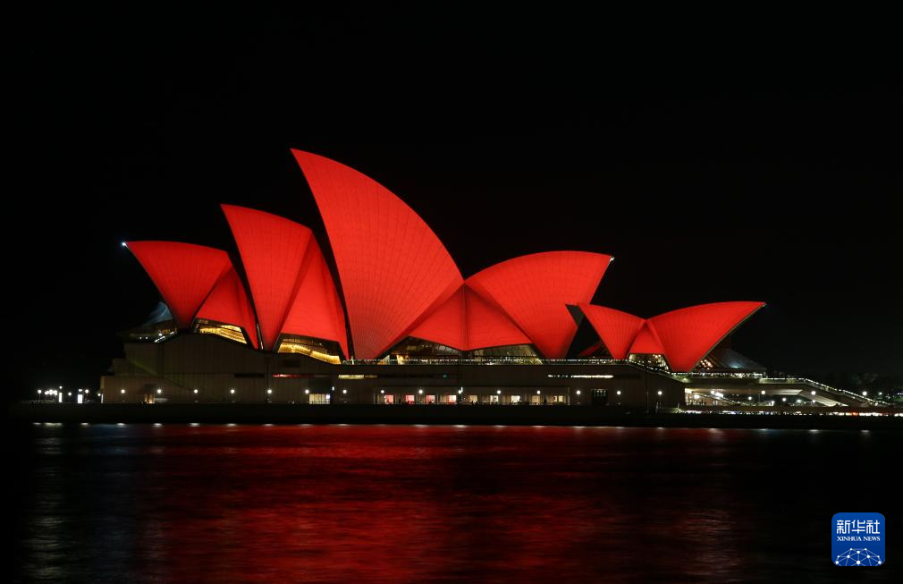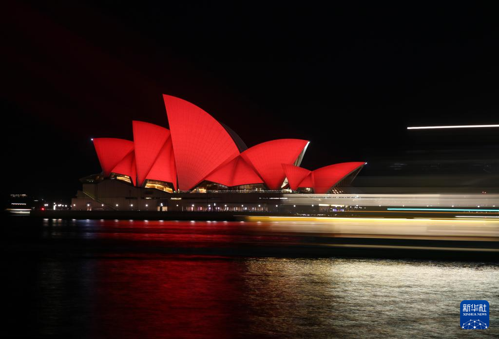 2月4日,澳大利亞悉尼歌劇院點亮“中國紅”,慶祝中國農歷新年。