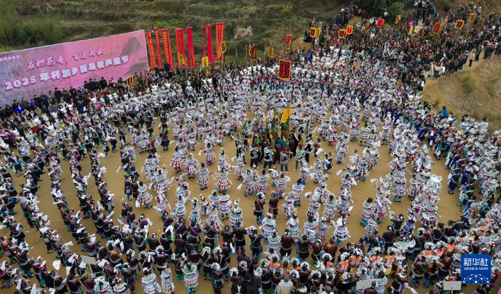 當日是正月初八,廣西柳州市融水苗族自治縣桿洞鄉舉行一年一度的百鳥衣蘆笙坡會,苗、瑤、壯等上萬名各族群眾和游客歡聚一堂,展示民族服飾、跳蘆笙踩堂舞、奏響蘆笙,歡度新春。