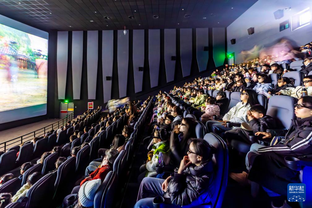 1月31日,觀眾在貴州省黔西市的一家電影城觀看春節檔電影《哪吒之魔童鬧?!?。