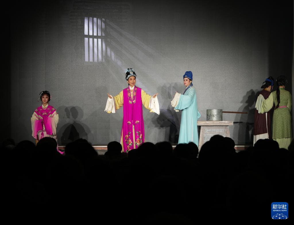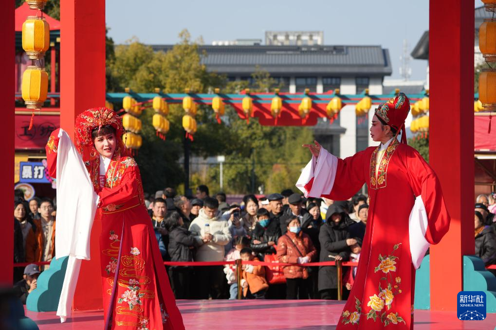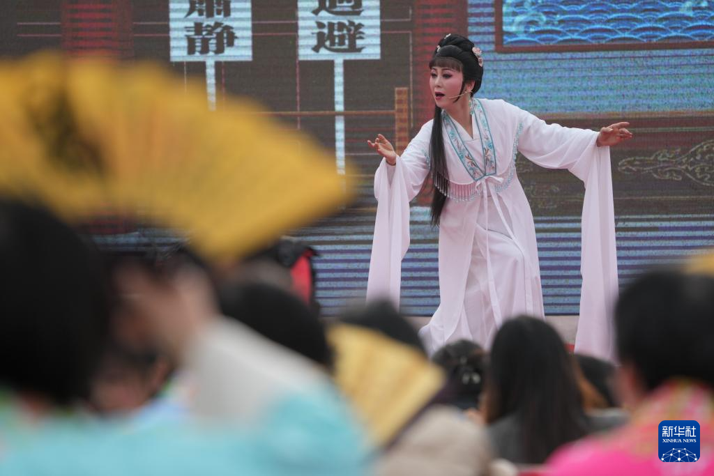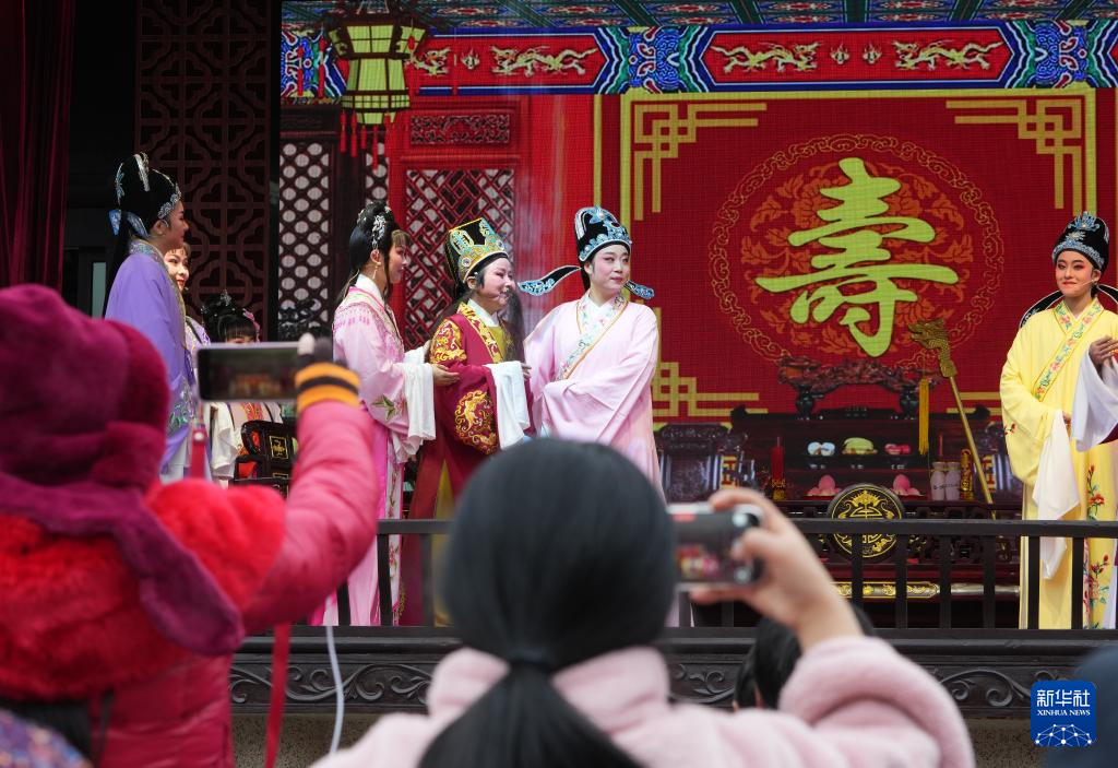 在紹興市越城區,演員在“紹興古城過大年”活動上表演越劇《何文秀》選段(1月29日攝)。