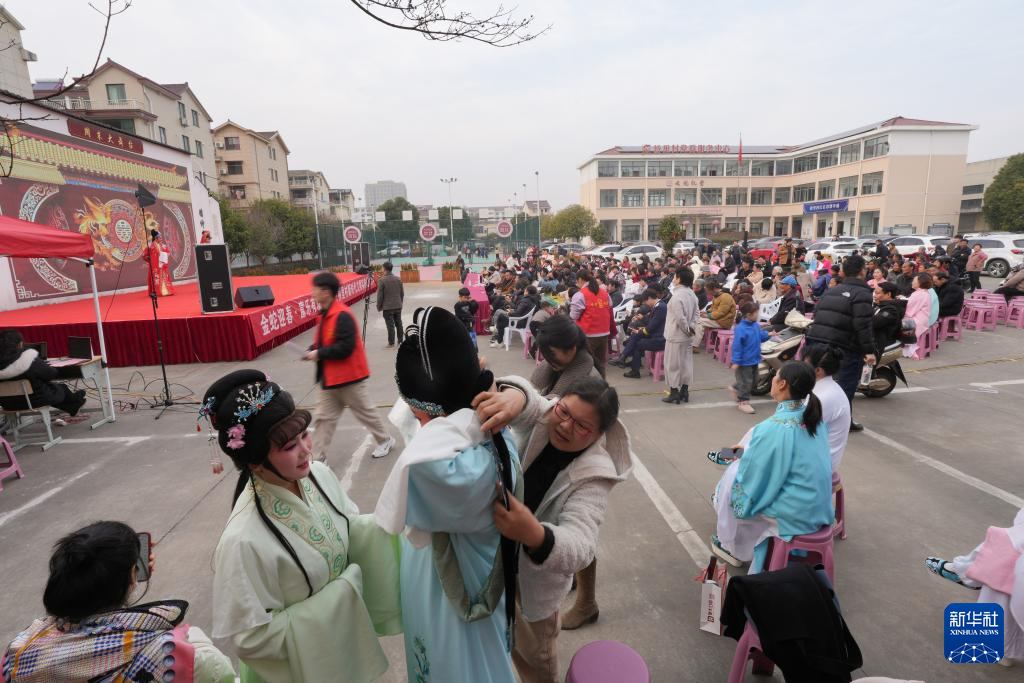 紹興市嵊州市三江街道橋里村的戲劇村晚(1月21日攝)。