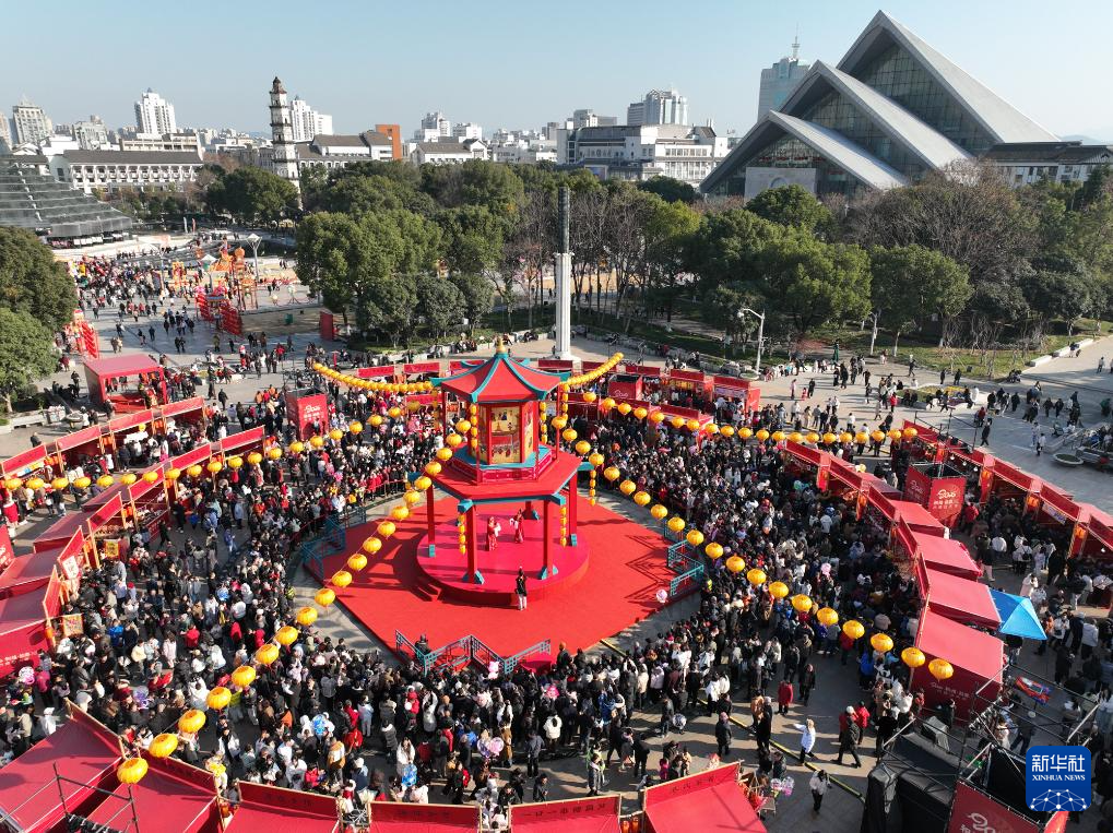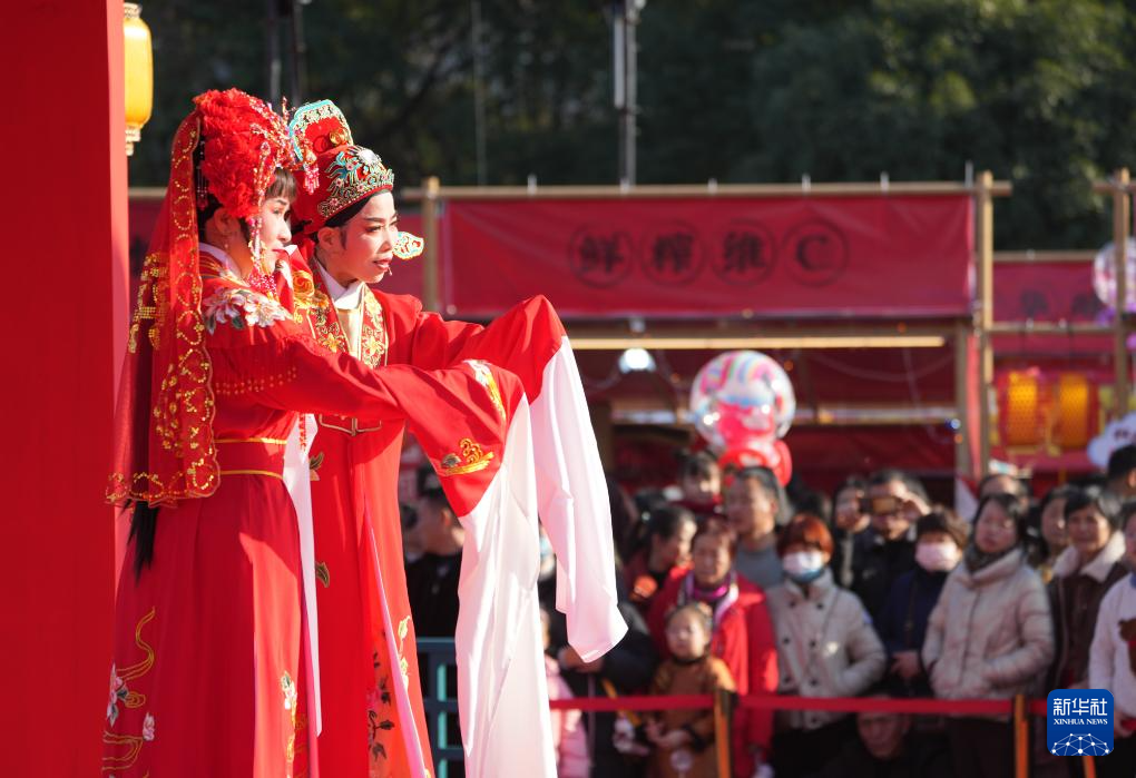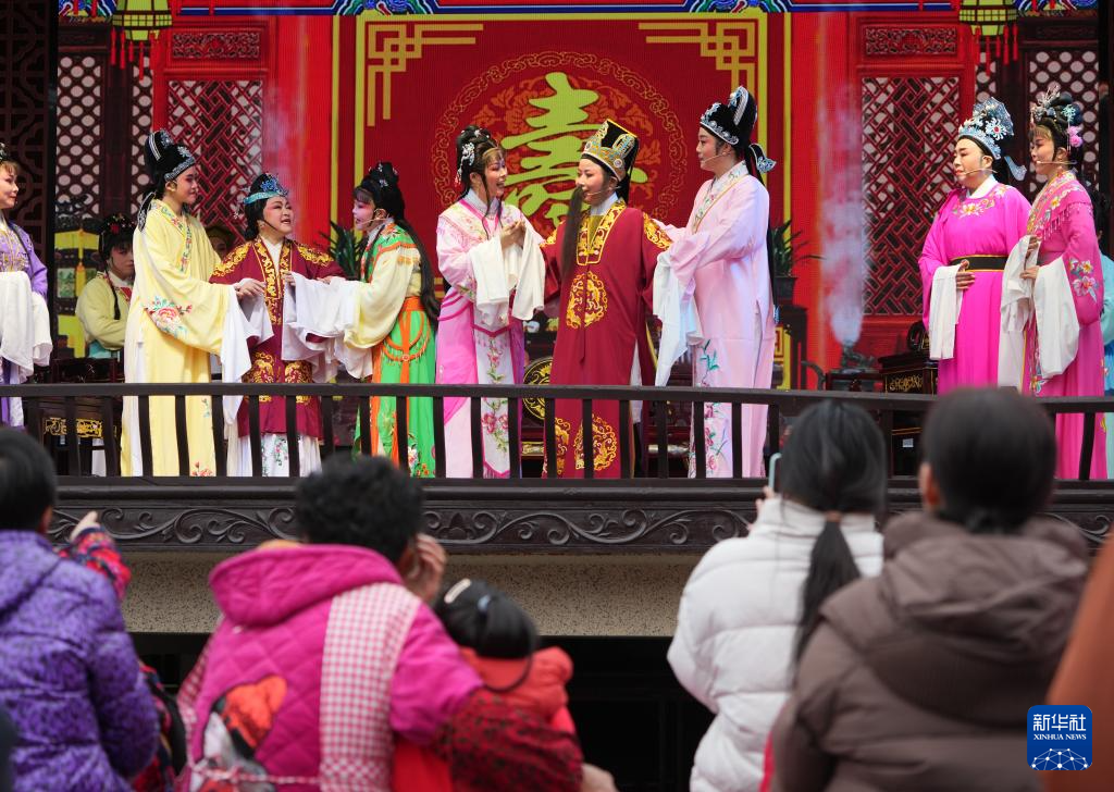 在紹興市越城區,群眾在“紹興古城過大年”活動上欣賞越劇表演(1月29日攝)。