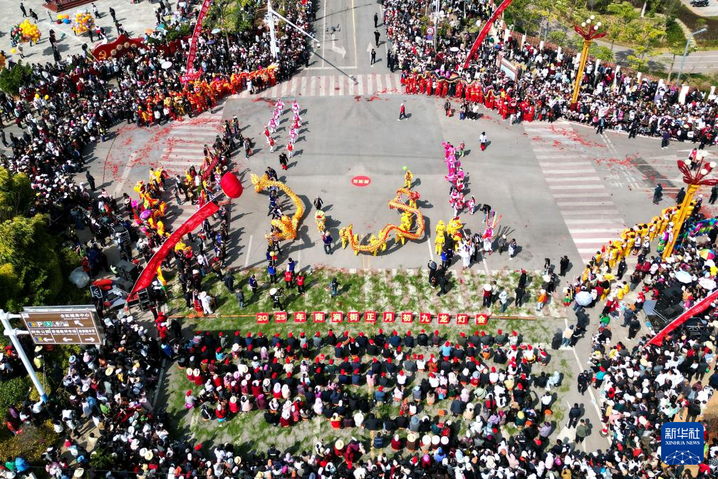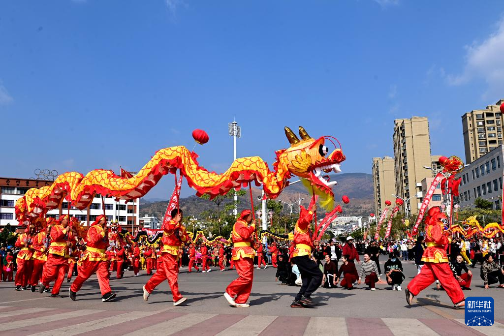 當日是農歷正月初九,云南省大理白族自治州南澗彝族自治縣舉行龍燈會,來自全縣8個鄉鎮的30多支表演隊伍身著盛裝齊聚南澗縣城,鬧龍燈慶新春。
