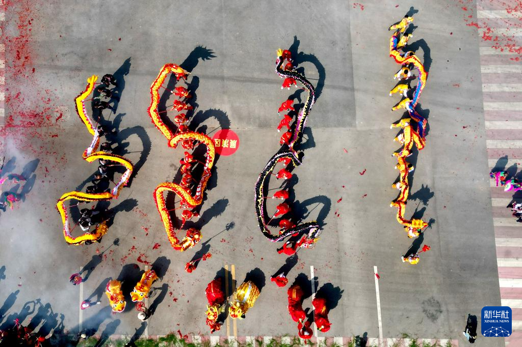 2月6日,人們在南澗縣龍燈會上表演舞龍(無人機照片)。