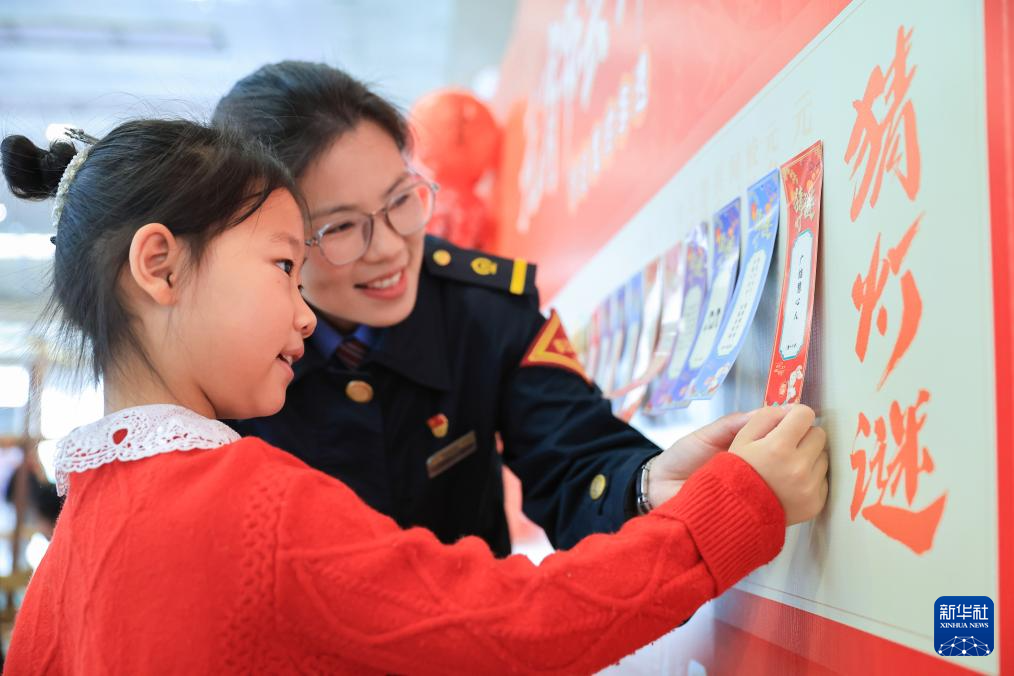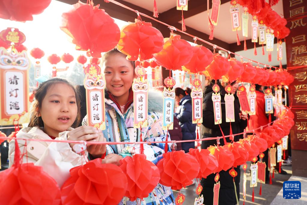 2月11日,湖南省衡陽市衡陽縣在明翰廣場開展猜燈謎活動,吸引眾多市民參與。