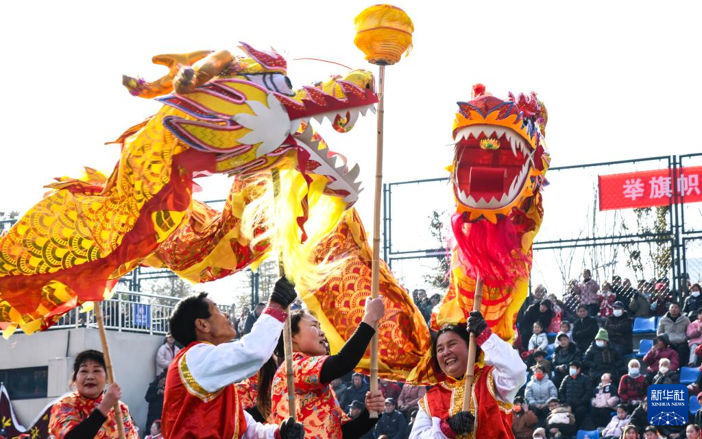2月9日,河北省石家莊市元氏縣群眾表演舞龍。