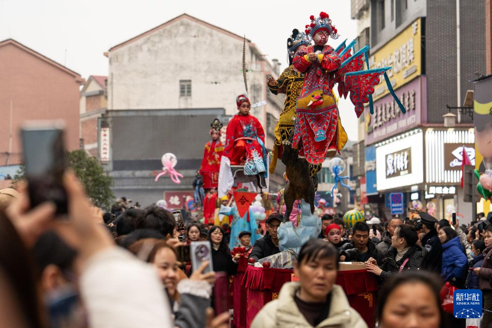 2月11日,在湖南省汨羅市長樂鎮,人們參加抬閣故事會?!伴L樂抬閣故事會”是長樂鎮當地一項傳承千年的元宵節民俗活動,2011年入選國家級非物質文化遺產擴展項目名錄。
