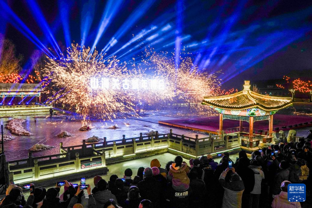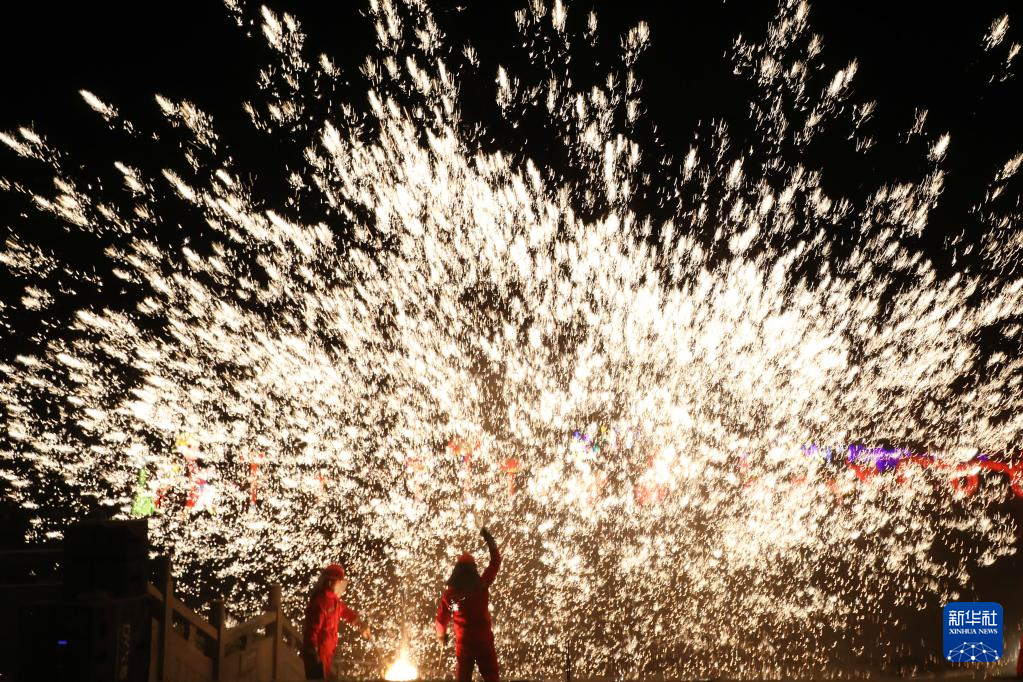 2月10日,游客在河北省秦皇島市山海關古城景區觀看打鐵花。