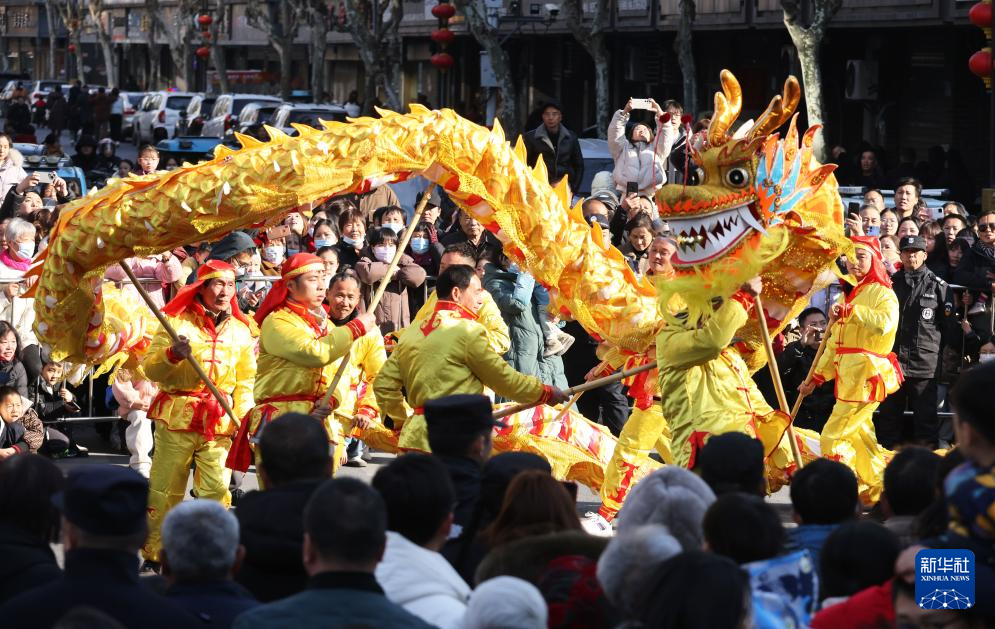 2月9日,民間藝人在浙江省湖州市德清縣乾元鎮進行舞龍表演。