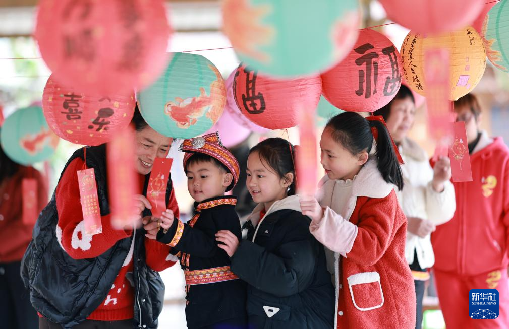 2月10日,人們在廣西桂林市靈川縣蘭田瑤族鄉西江寨參與猜燈謎活動。