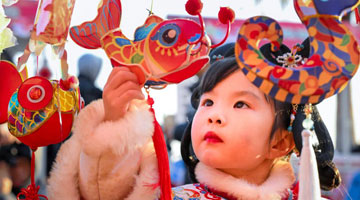 2月11日,少數民族同胞在貴州省錦屏縣隆里古城舉辦的“村晚”活動中展示花帶。