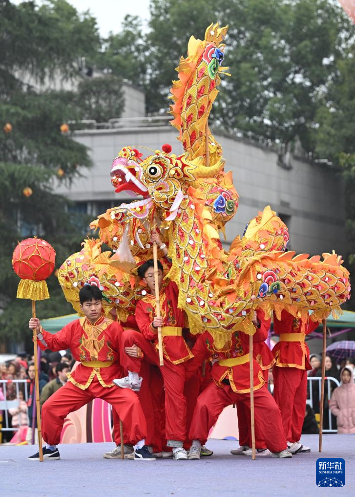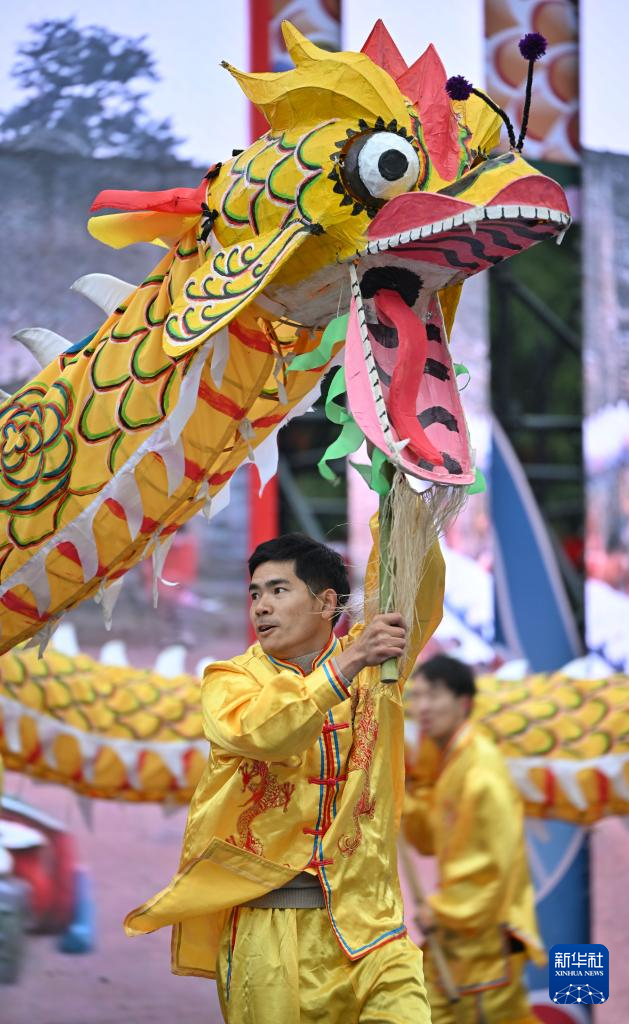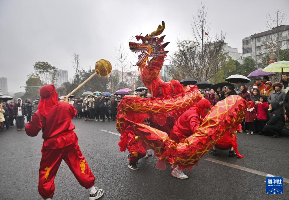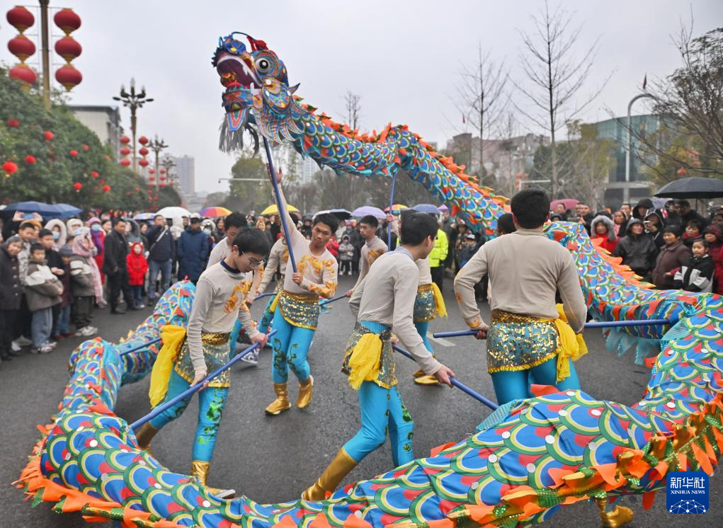 2月12日,來自瀘縣方洞鎮的龍舞隊在表演瀘州雨壇彩龍。瀘州雨壇彩龍是四川瀘縣的傳統龍舞,2006年被列入第一批國家級非物質文化遺產代表性項目名錄。