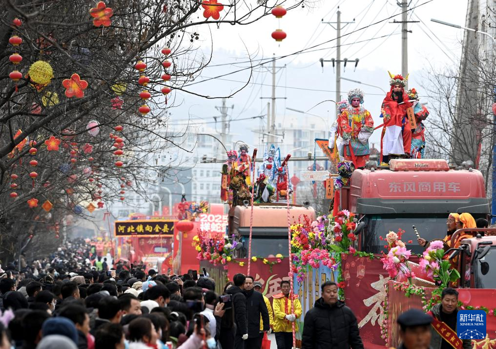 春節期間,“中國社火文化之鄉”陜西省寶雞市隴縣年味十足,熱鬧非凡。從縣城的大街小巷到鄉村的田間地頭,隨處可見各類社火游演隊伍。騎在馬背上的“馬社火”、將兒童架在肩上的“挈社火”、走村入戶表演的“步社火”……各類社火特色鮮明,精彩紛呈,演繹神話傳說和歷史人物故事,營造出活力涌動、歡樂祥和的節日氛圍。