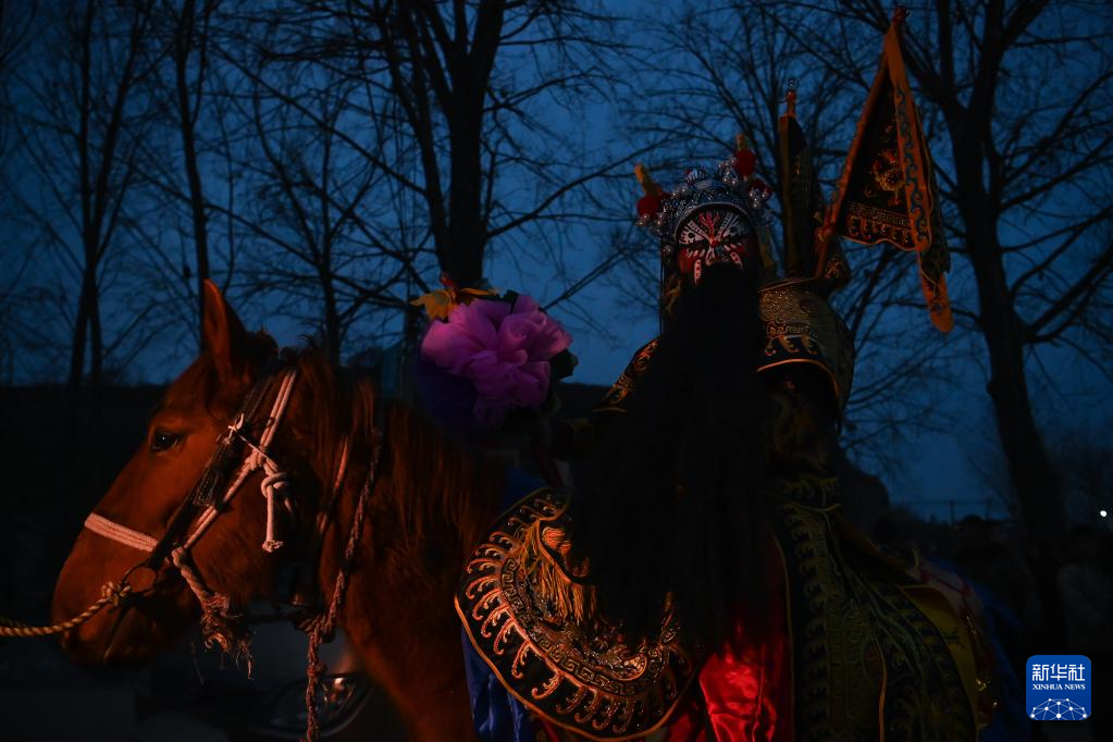 2月11日清晨,隴縣黃花峪村的馬社火演員準備出發游演。