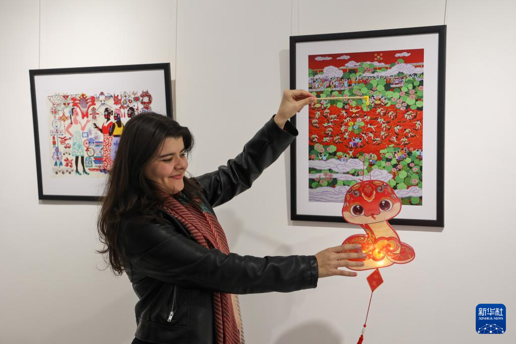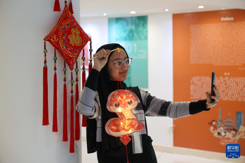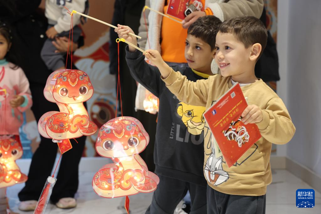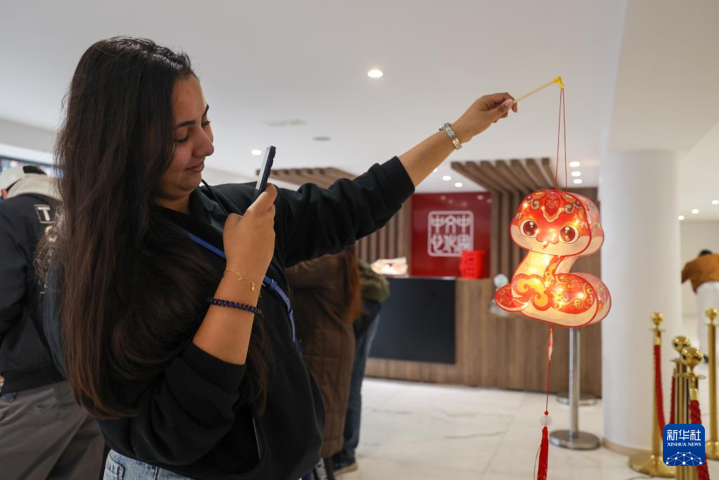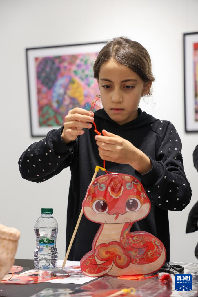 當日,元宵節慶?;顒釉诶吞刂袊幕行呐e行。摩洛哥民眾體驗蛇形燈籠制作,慶祝元宵節。