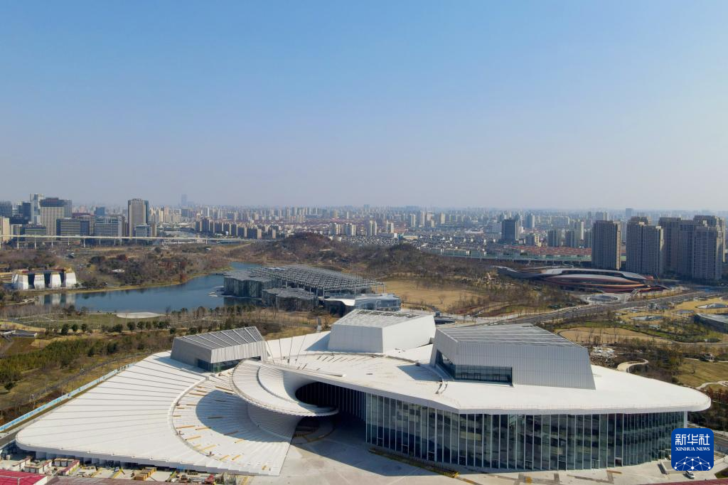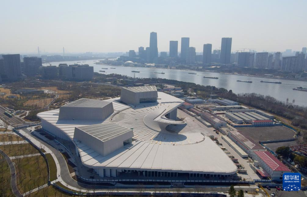 2月13日俯瞰位于世博文化公園內的上海大歌劇院(無人機照片)。