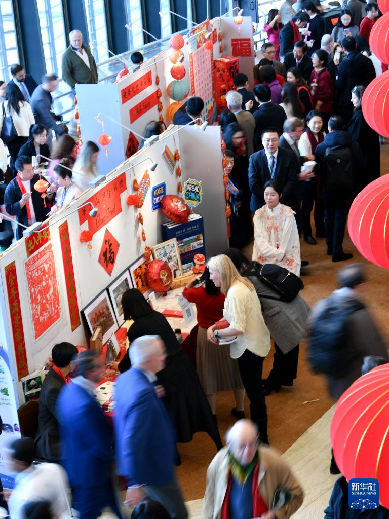 2月12日,在瑞士日內瓦萬國宮,人們參加迎新春慶?;顒?。