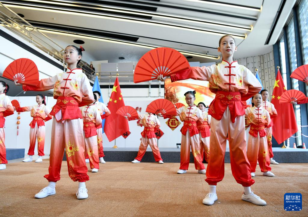 2月12日,在瑞士日內瓦萬國宮,孩子們在迎新春慶?;顒由媳硌?。