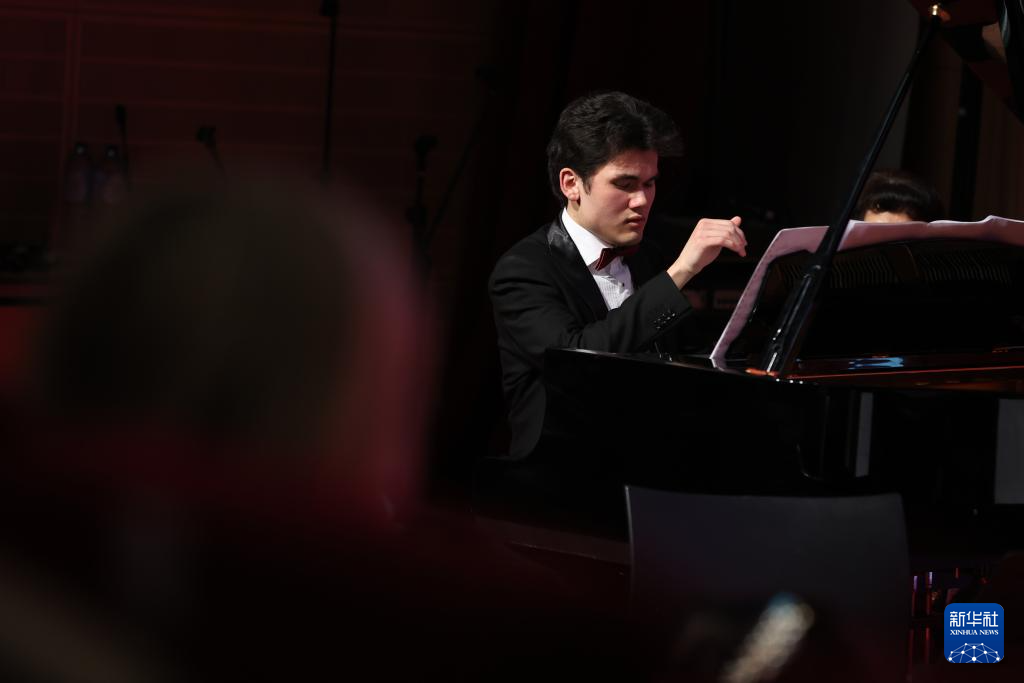 2月15日,比利時華裔青年鋼琴家郭鑫冉在布魯塞爾中國文化中心新春音樂會上演奏。