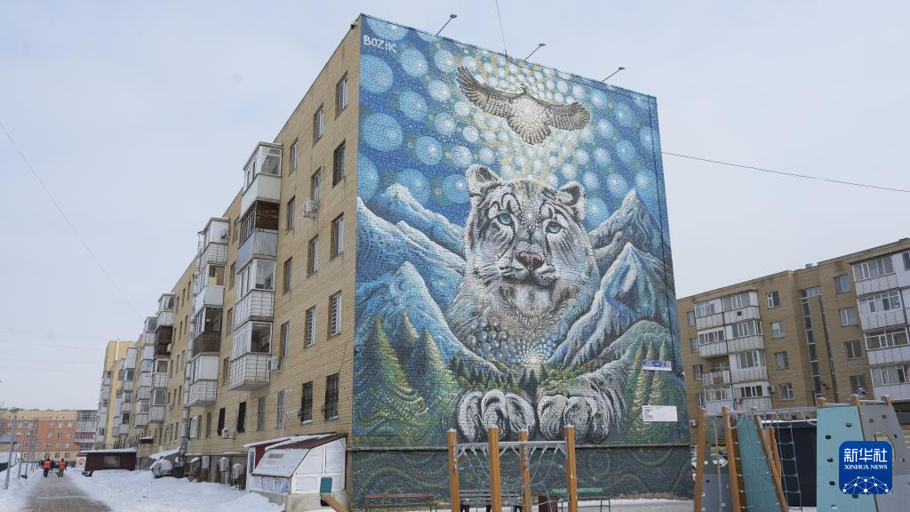 在哈薩克斯坦首都阿斯塔納,市政府和民間藝術家合作,用精彩紛呈的墻繪藝術點綴老城區居民樓外立面,為城市增添一抹亮色。