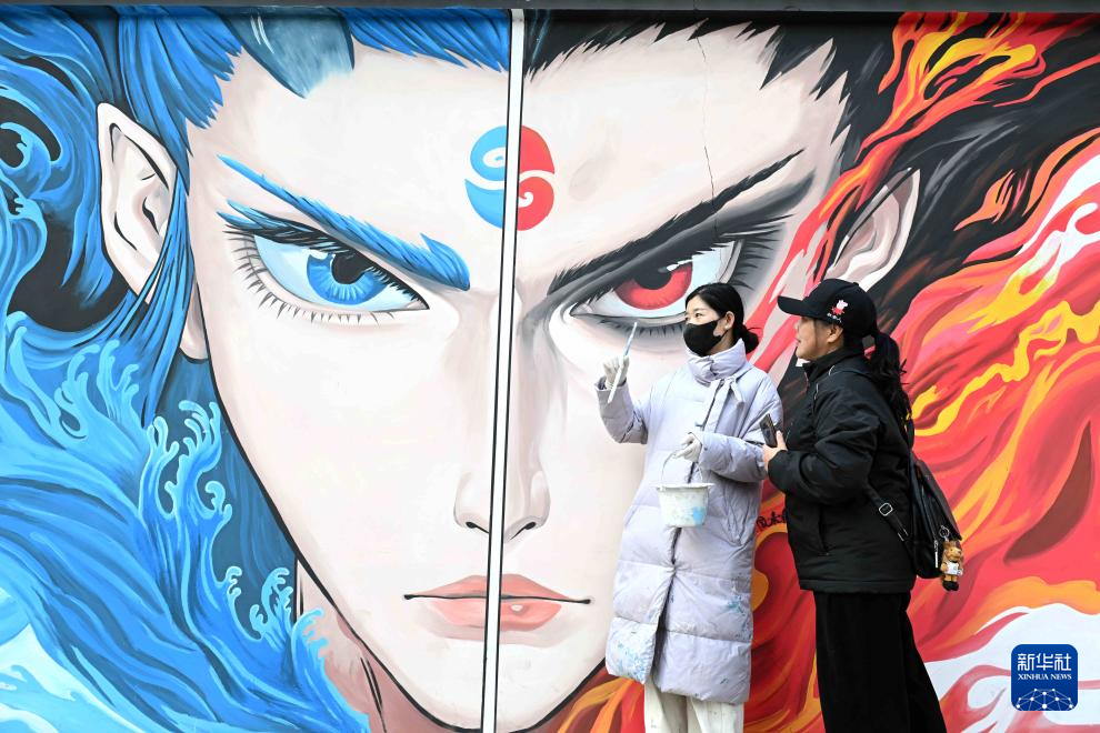 日前,根據動畫電影《哪吒之魔童鬧?!穭撟鞯闹黝}墻繪亮相石家莊街頭,吸引市民前來參觀打卡。