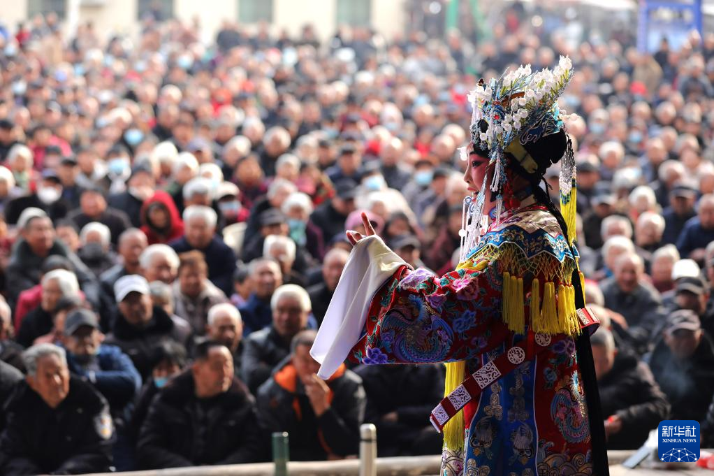 2月18日,村民們在溫縣武德鎮村文化中心觀看豫劇《下陳州》。