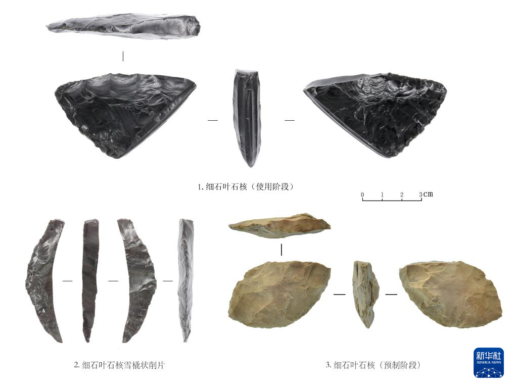 吉林和龍市大洞舊石器時代遺址第三階段出土的細石葉技術產品(資料照片)。