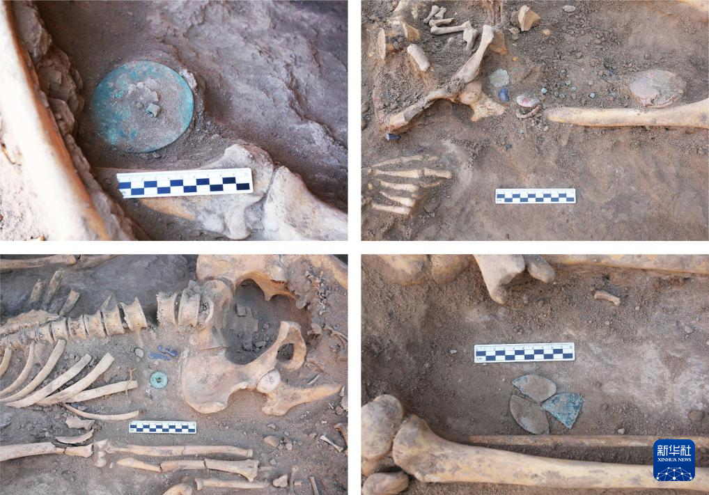 烏茲別克斯坦蒙扎鐵佩遺址M7隨葬品出土情況(拼版照片,資料照片)。