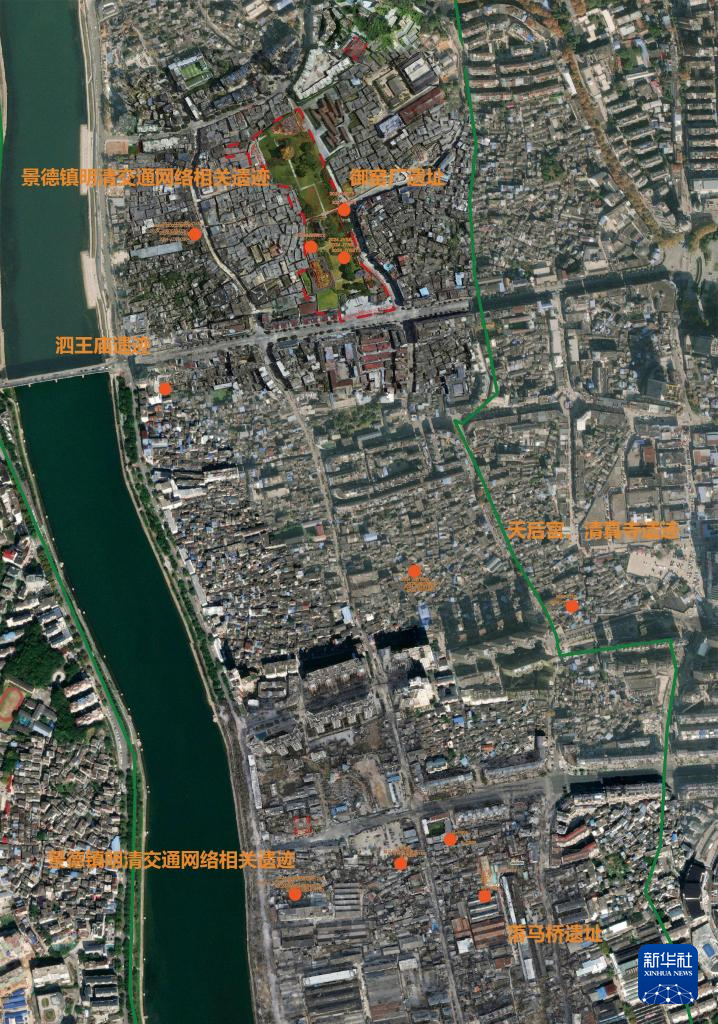 江西景德鎮市元明清制瓷業遺址群2024年鎮區發掘點位置示意圖。