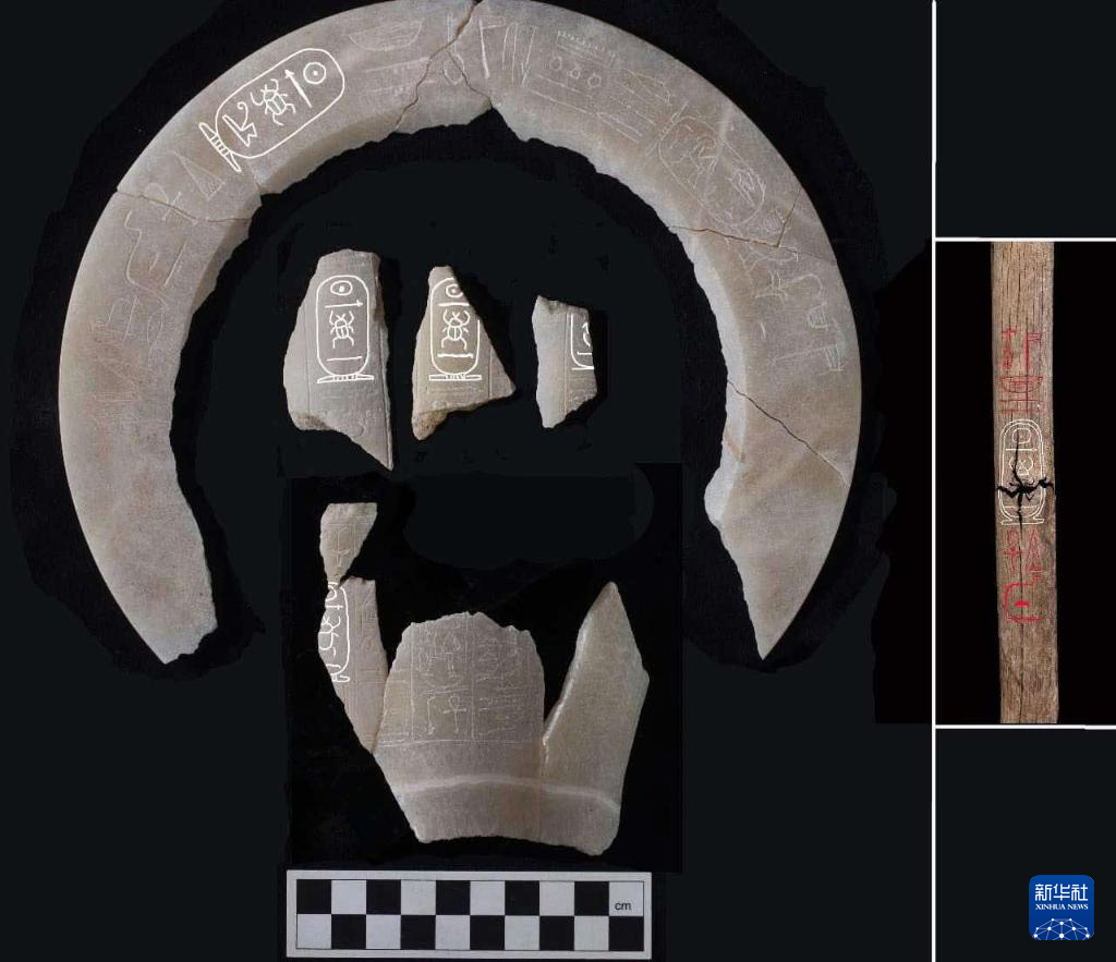 這張拼接的圖像顯示的是圖特摩斯二世法老陵墓中出土的文物。
