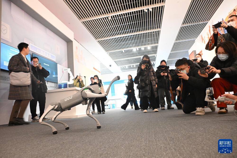 2月20日,觀眾在網絡發展新圖景成就展上拍攝一款機器狗。