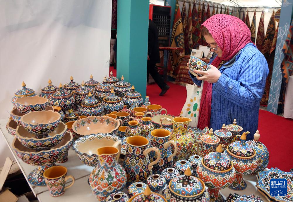 當日,第九屆伊朗“曙光旬”國際手工藝品節向觀眾開放,展出了來自伊朗等約20個國家的7000多件手工藝品。
