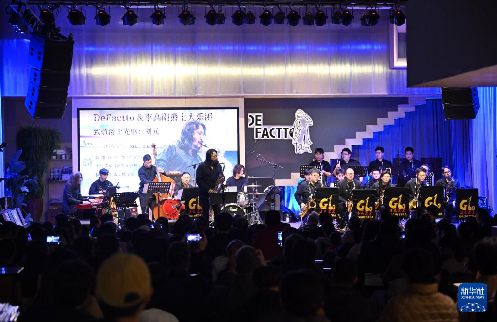 2月22日,DeFactto&李高陽爵士大樂團在北京798藝術區舉行音樂會。20多位音樂家在演出中融合當代爵士、放克、拉丁、搖滾等元素,致敬中國爵士樂經典。