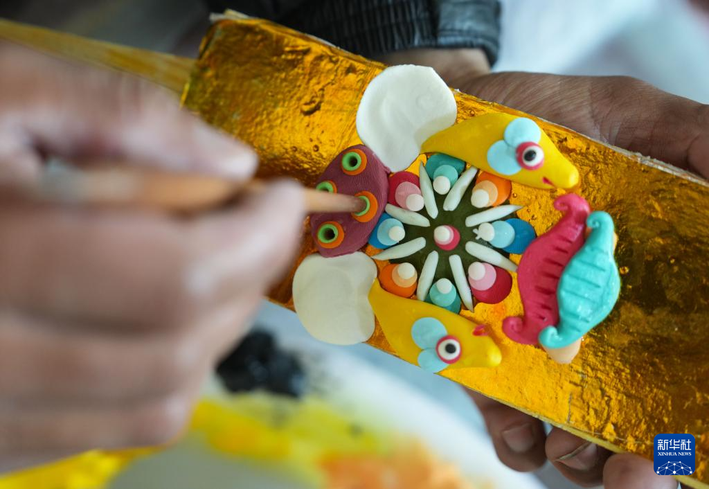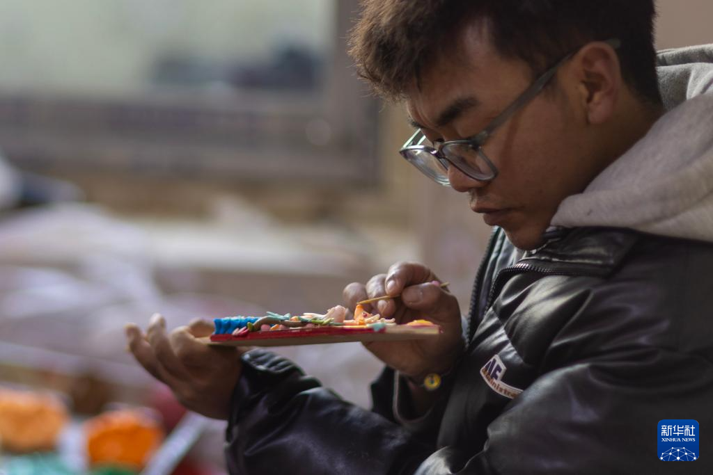 在拉薩市老城區,手工藝人在捏制酥油花(2月25日攝)。