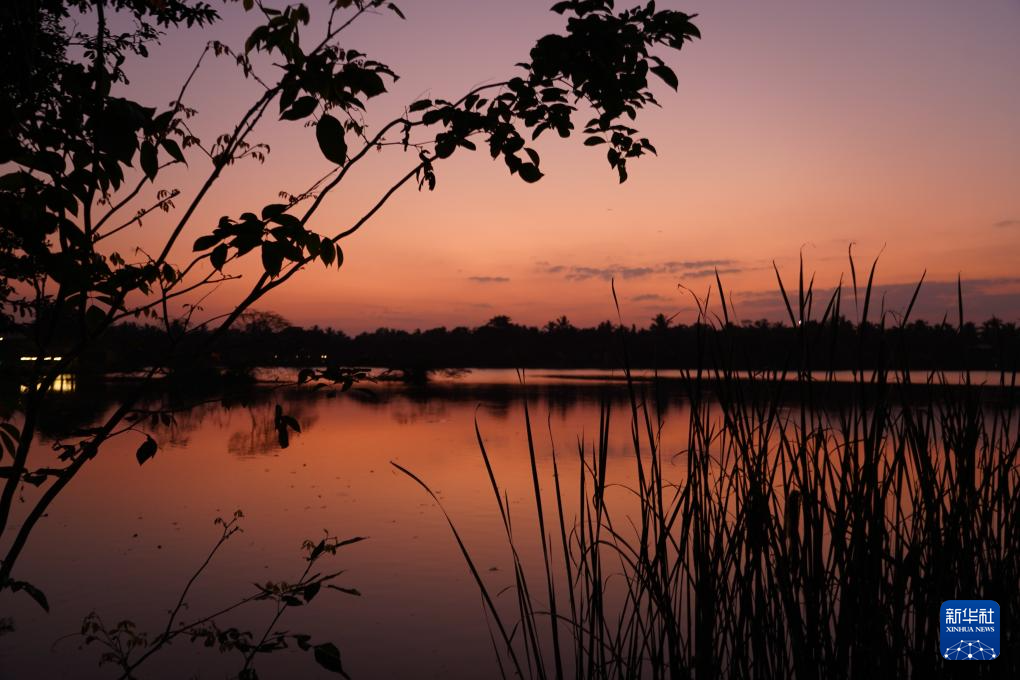 這是2月20日在斯里蘭卡阿努拉達普拉一處湖邊拍攝的傍晚景色。