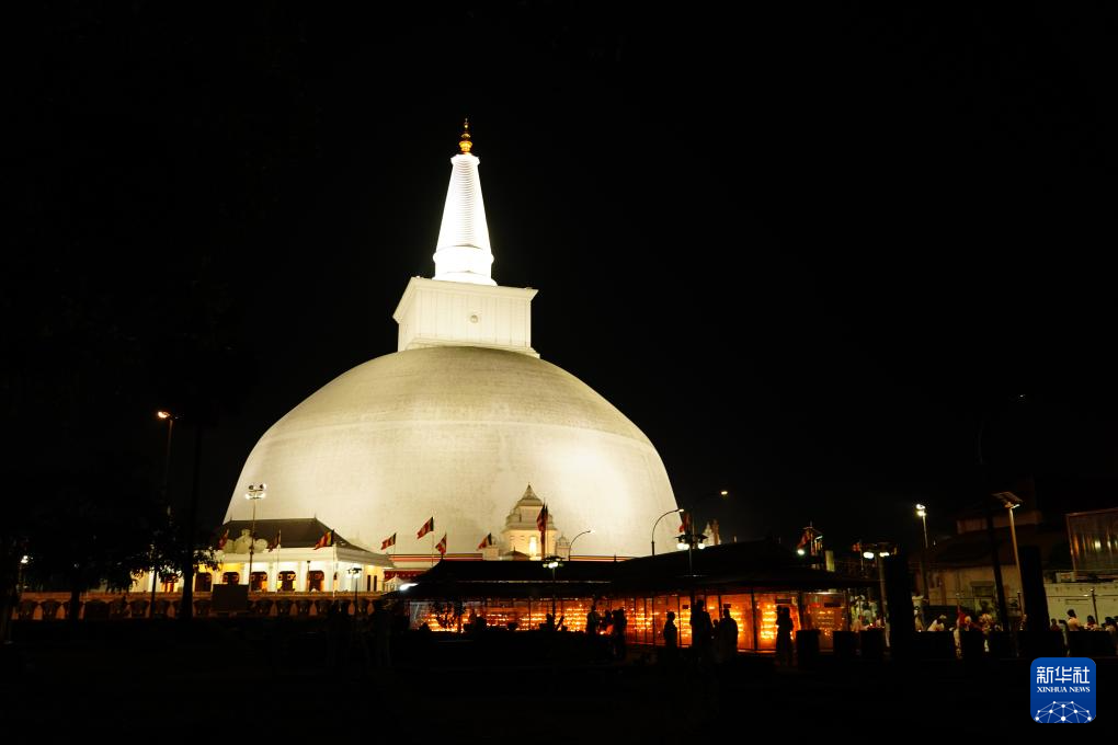 這是2月21日在斯里蘭卡阿努拉達普拉拍攝的魯萬維里薩亞舍利塔夜景。