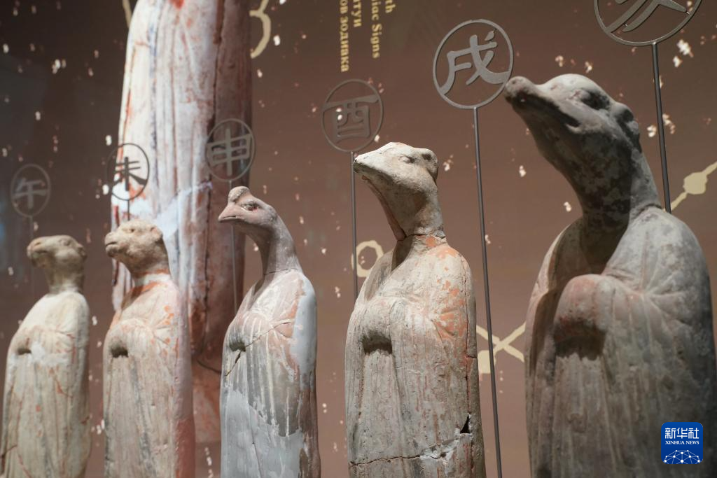 西部機場博物館展出的唐代文物陶十二生肖俑(2月26日攝)。