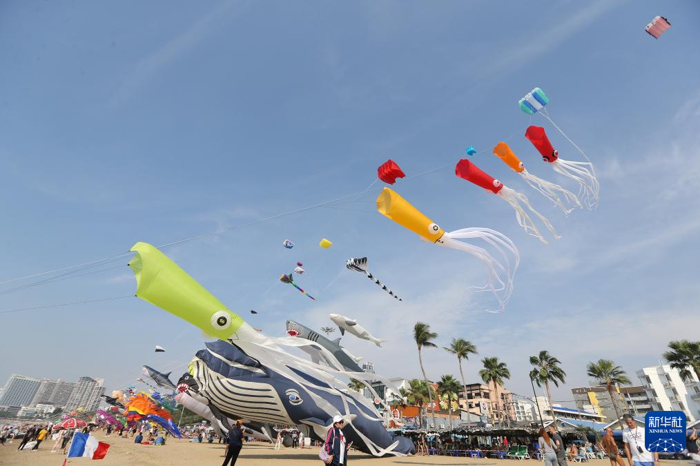 這是2月26日在泰國芭堤雅海灘上拍攝的風箏。