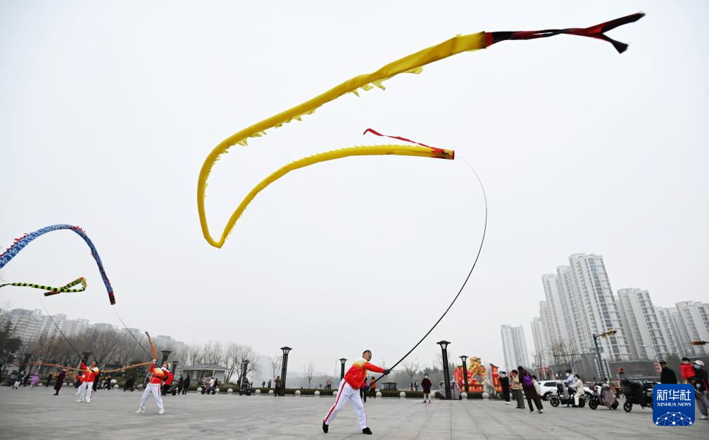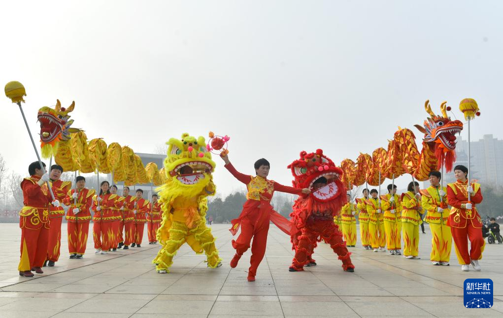 3月1日,河南省夏邑縣舞龍隊在長壽廣場開展舞龍舞獅活動。