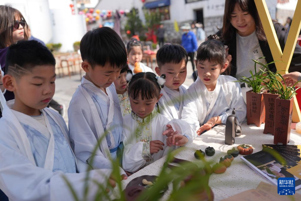 3月1日,在浙江省湖州市吳興區八里店鎮潞村舉行的“二月二龍抬頭”傳統文化活動上,小朋友在觀看非遺項目展示。