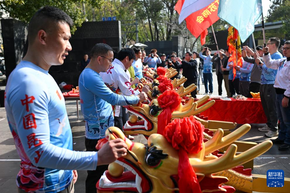 3月1日,江蘇省昆山市龍舟運動協會在賽龍舟比賽前進行龍舟點睛儀式。
