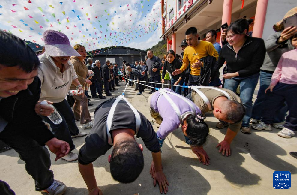 3月1日,在廣西桂林市龍勝各族自治縣龍勝鎮都坪村,村民參加“大象拔河”比賽。