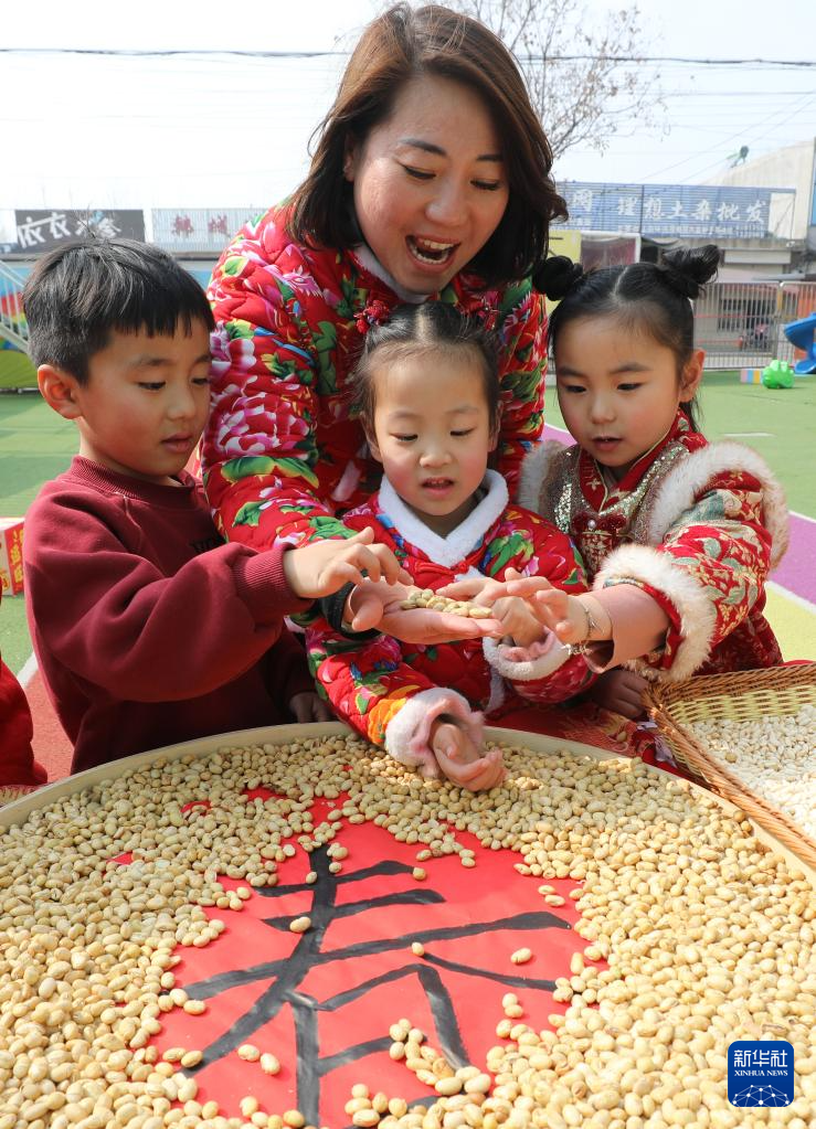 2月28日,山東省棗莊市實驗幼兒園(老城園)的小朋友們在品嘗糖豆。