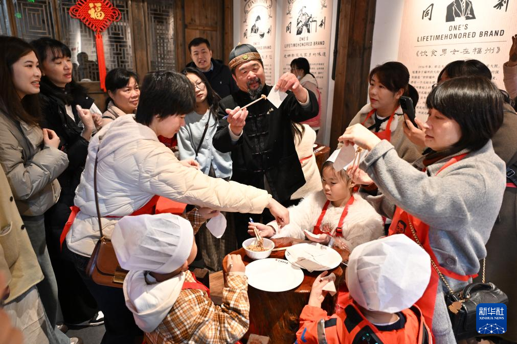 3月8日,家長帶領小朋友游覽福州三坊七巷同利肉燕非遺文化體驗館。
