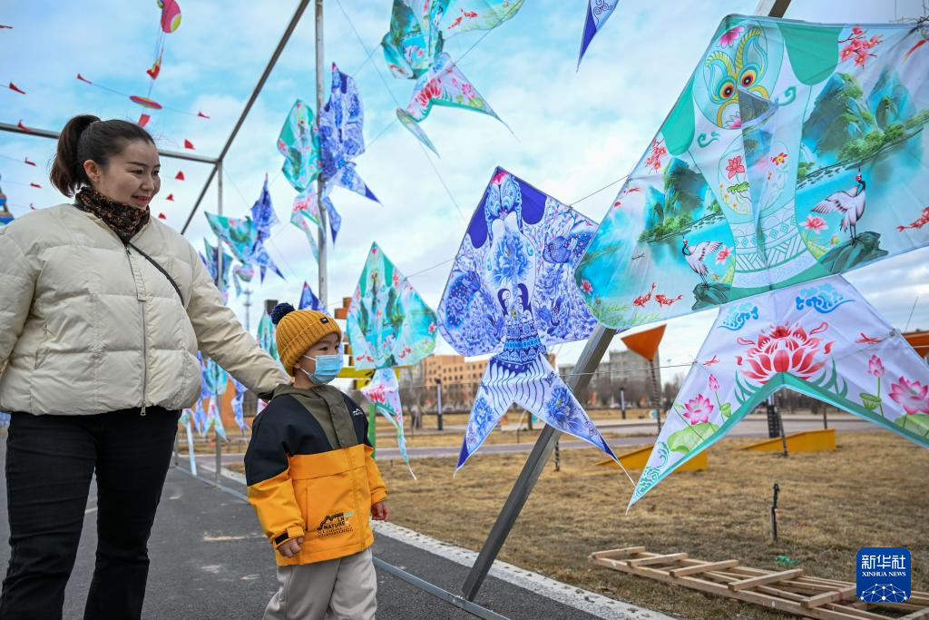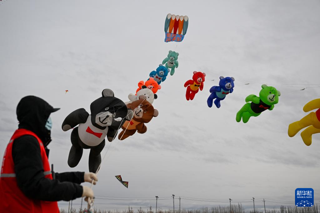 3月8日,在新疆都拉塔口岸房車露營基地,當地群眾參加風箏節活動。