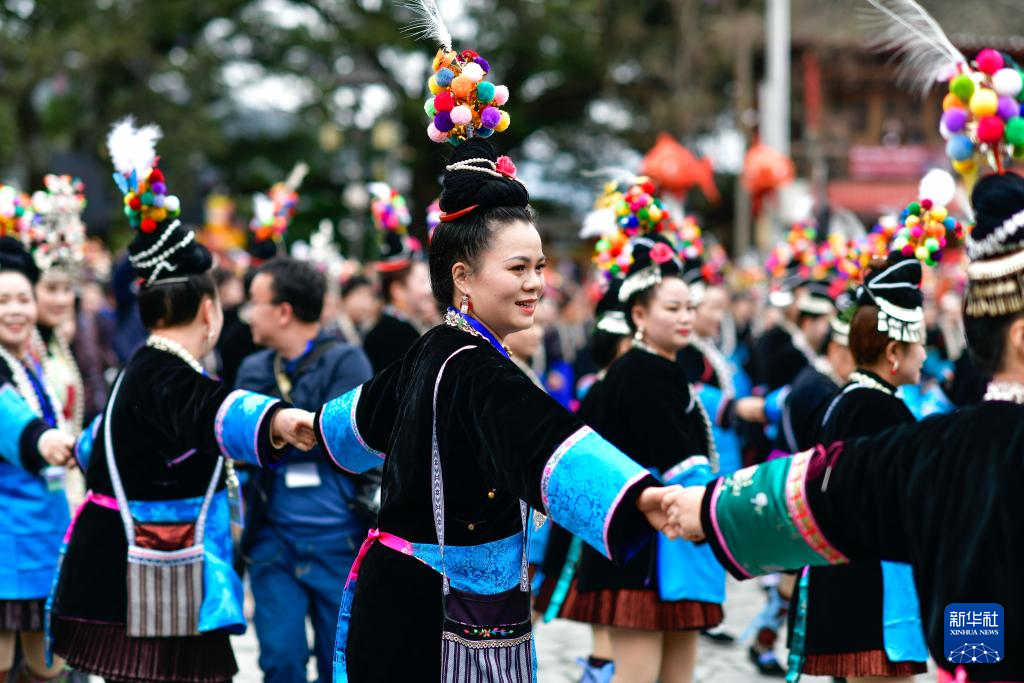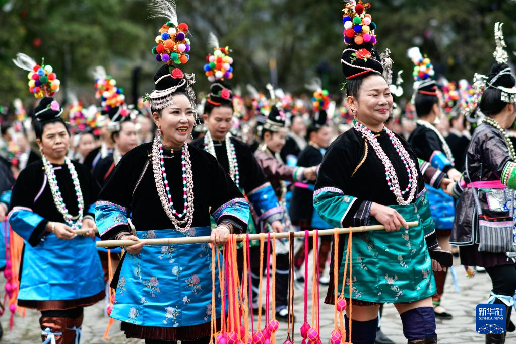 3月15日,當地群眾在貴州省榕江縣三寶侗寨參加“薩瑪節”活動。