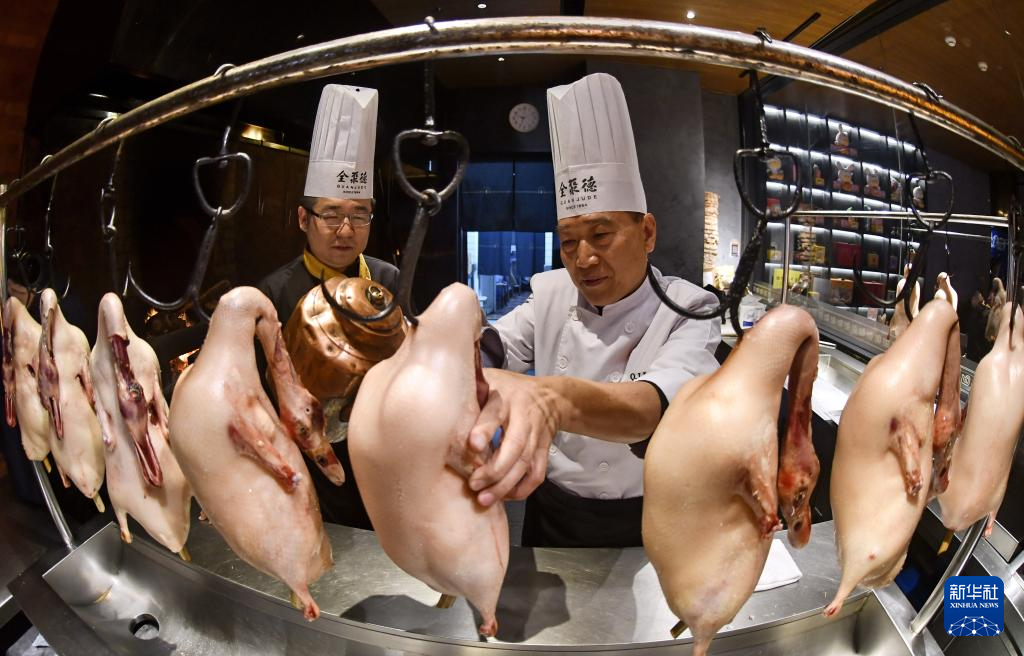 北京烤鴨是北京的美食名片。2008年烤鴨技藝(全聚德掛爐烤鴨技藝)被列入第二批國家級非物質文化遺產名錄,如今全聚德掛爐烤鴨這項技藝已經經過了七代師徒傳承。