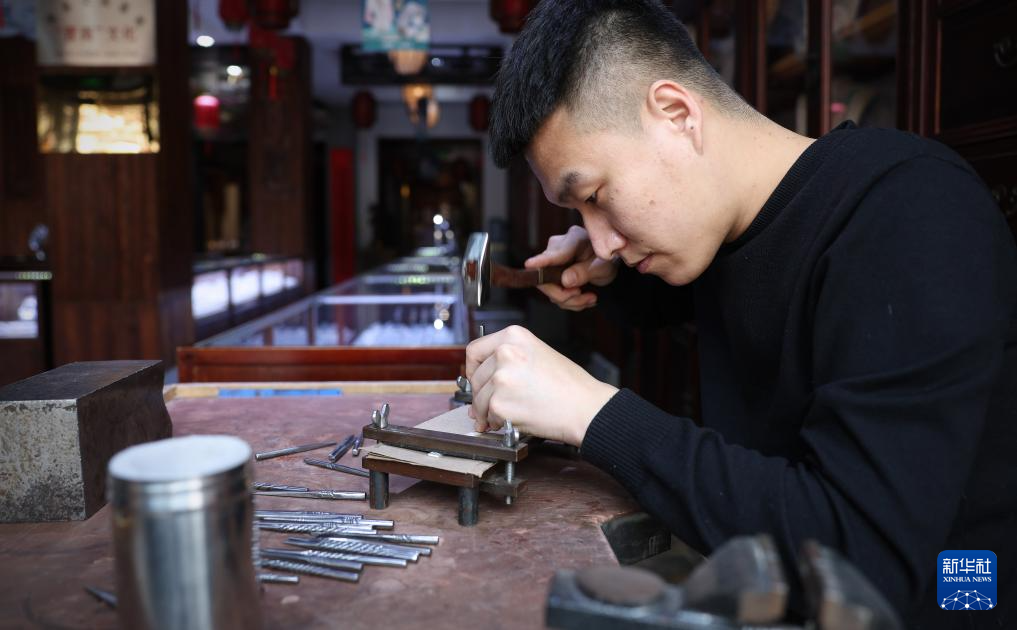 一張銀片錘萬遍,一件銀飾藏匠心。傳承120余年的老世興金銀制作技藝工藝精細、紋樣豐富、造型獨特。作為年輕的技藝傳承人,孫朋說,“學習制作銀藝不僅讓我掌握了一門技藝,更讓我感受到傳統文化的魅力。我希望未來能像師父一樣,將這門技藝傳承下去?!?/p>