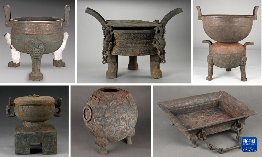 安徽淮南武王墩一號墓出土的銅器(拼版照片,資料照片) 。新華社發(考古雜志社供圖)