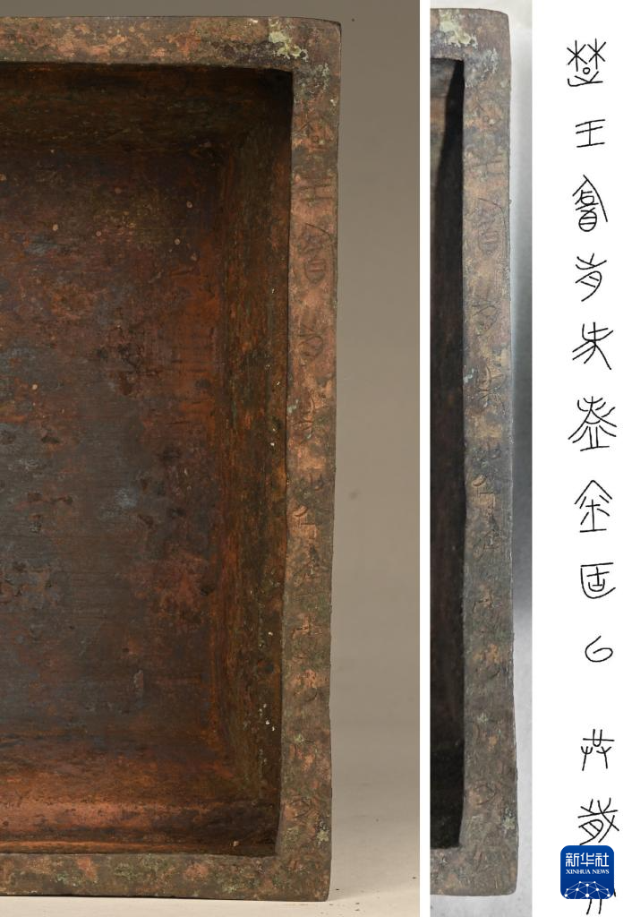 安徽淮南武王墩一號墓出土的銅簠銘文(2024年5月15日攝)。新華社發